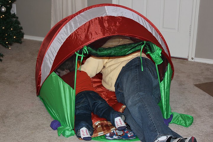 It serves as a fort, a camping tent (see the sleeping bag), a toy box, and place where boys of all ages can hang out.
